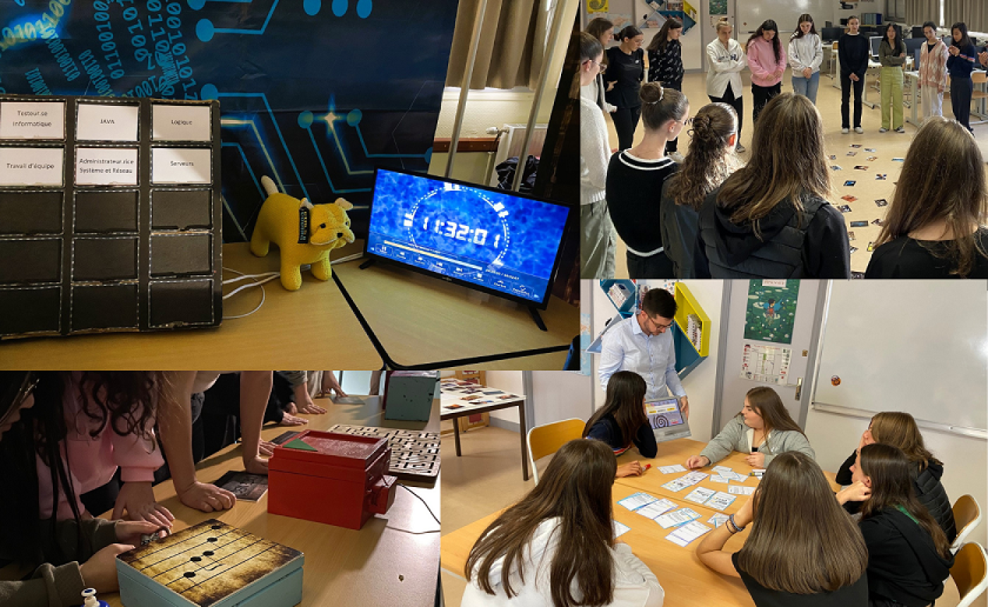 Ainsi, dès le premier matin, les 23 collégiennes ont pu découvrir la diversité des métiers du numérique à travers un escape game proposé par l’ENI Quimper, et les métiers du développement grâce à un jeu de l’oie proposé par le CESI Brest.