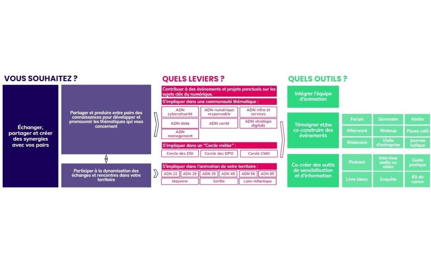 Vous venez d’adhérer à ADN Ouest et vous ne connaissez pas encore toutes les activités proposées par votre association ? Vous êtes membre depuis un certain temps, vous avez assisté à plusieurs événements et vous avez envie de vous impliquer plus dans les activités d’ADN Ouest ? Découvrez l’ensemble des possibilités qui s’offrent à vous !