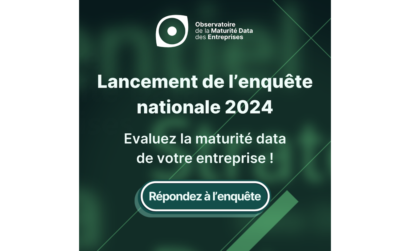 L'equête OMDE est officiellement ouverte pour une 5ème année consécutive ! Pour l’occasion, la communauté ADN Data & IA est de nouveau partenaire pour l’édition 2024 de l'Observatoire de la Maturité Data des Entreprises, une initiative française qui vise à mieux comprendre et accompagner la connaissance de l’usage de la data dans les entreprises. Cet observatoire fait ressortir les besoins prioritaires des entreprises, en termes d’outils et de compétences, pour mettre à profit les données dans leurs activités.