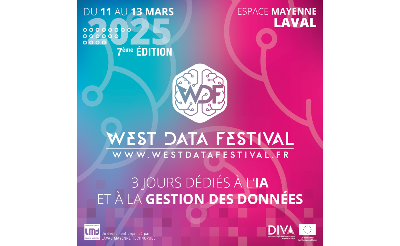 Lancé en 2019 par Laval Mayenne Technopole, le West Data Festival s’impose comme le rendez-vous incontournable de l’IA et la gestion des données dans l’Ouest. Cet événement annuel de trois jours, offre aux professionnels un espace d’échange privilégié pour s’informer, rencontrer des personnes inspirantes, réfléchir et développer leur réseau. En 2023, le West Data Festival est devenu l’événement annuel du Digital European Hub DIVA approuvé par l’Europe.