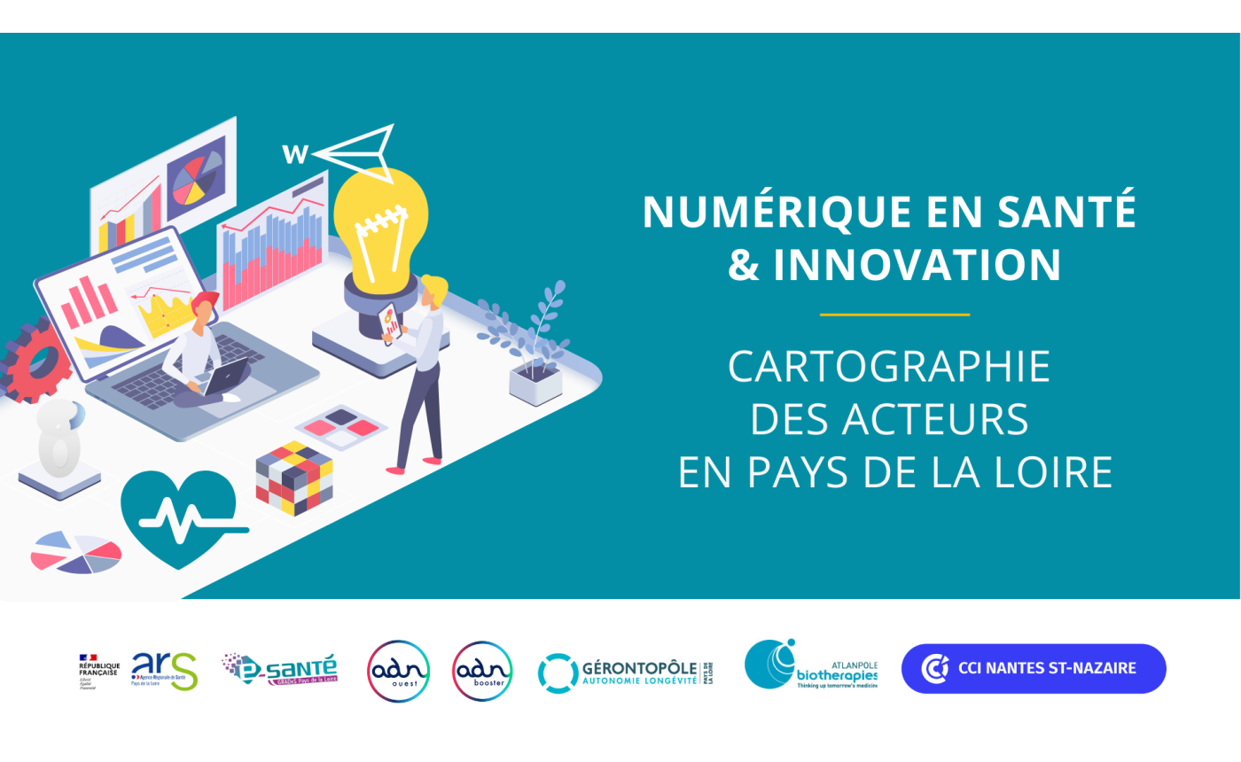 La communauté santé d'ADN Ouest s'est associée à la démarche de recensement initiée par l'ARS (Agence Régionale de Santé), le GRADeS (Groupement Régional d'Appui au Développement de la e-Santé) des Pays de la Loire et leurs partenaires (ADN Booster, Gérontopôle des Pays de la Loire, Atlanpôle Biothérapies, CCI Nantes - Saint Nazaire) pour répondre à un besoin d'identification des acteurs de l'innovation dans le domaine du numérique en santé afin de favoriser l'interconnaissance entre les acteurs en Pays de la Loire.