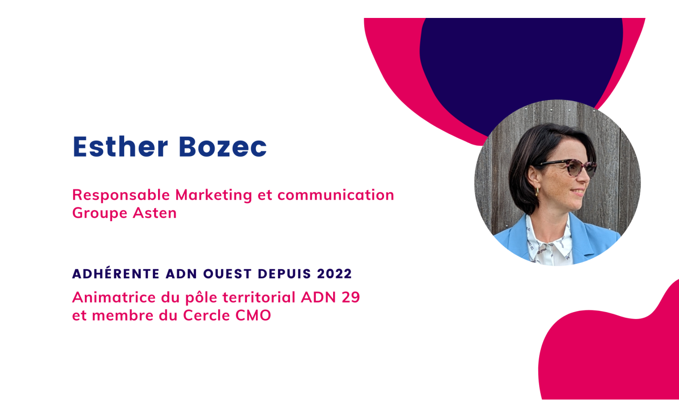 Pour aller à la rencontre de celles et ceux qui font vivre ADN Ouest par leur engagement bénévole, nous vous proposons une nouvelle série de portraits d’adhérents, et nous partons aujourd'hui dans le Finistère à la rencontre d'Esther Bozec, Responsable Marketing et communication du Groupe Asten.