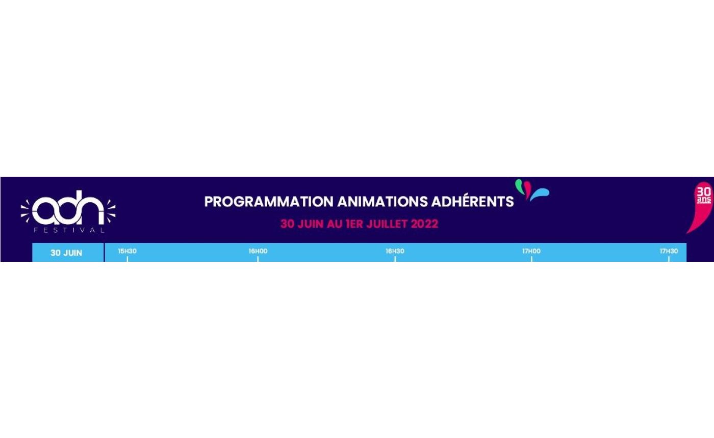 Vous le savez, votre association préférée vous prépare un grand événement à ne pas manquer cet été : la première édition d’ADN Festival ! Et oui, les inscriptions sont enfin ouvertes pour ce rendez-vous unique organisé par les adhérents pour les adhérents, qui vous permettra de découvrir et vivre toute la richesse de l’association tout au long de 24h dédiées au numérique et à la convivialité.