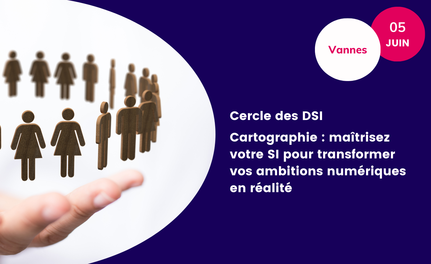 Le cercle DSI 56 se réunira le jeudi 5 juin dans les locaux de l'UBS pour une après-midi sur le thème de la cartographie et de l'urbanisation des systèmes d'informations. Entre pairs, en 3h sous format d'ateliers, venez échanger autour de trois thématiques essentielles : méthodologies, outils et gouvernance pour développer une cartographie efficace au service de vos ambitions numériques.